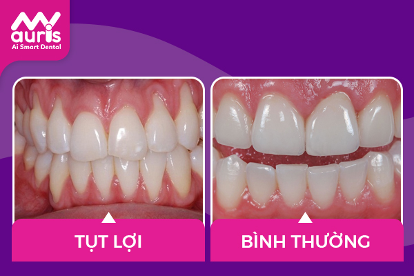 Tình trạng tụt nướu gây mất thẩm mỹ nghiêm trọng, tạo ra các khe hở giữa các răng và khiến răng lâu mọc không đều màu.